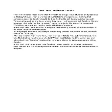 Web The Great Gatsby Summary of Chapter 8 by F. In this chapter Nick is reveals as the narrator of the story. The Great Gatsby F.